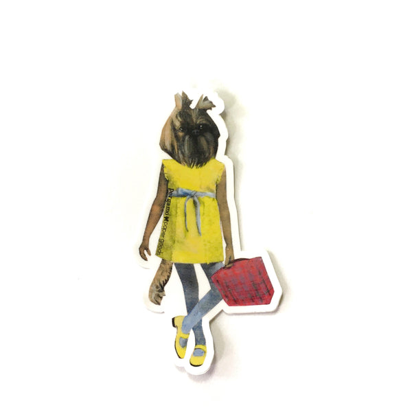 This cute shih tzu girl is all dressed up and is ready to come with you wherever you go! It is one of Gianna Pergamo's original illustrations replicated in beautiful bright colors on high quality vinyl. Feel free to stick it on your car or bike, it can go outside! It's also rated to last 3-5 years without fading. 4" tall.